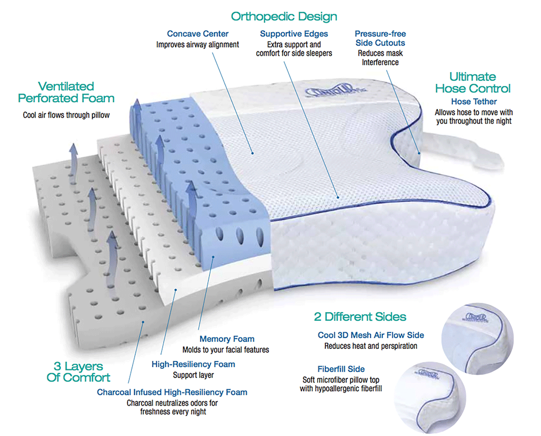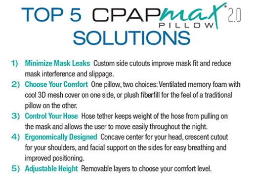 The Contour Products CPAPMax Pillow 2.0, is the second generation CPAPMax CPAP bed pillow that gives users their sleep back with exclusive features that eliminate the most common CPAP Therapy complaints.
